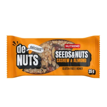 | NUTREND DeNuts 35g Seeds+Nuts 35g. Természetes mag- és dió szelet mézzel– Kesudió & Mandula ízesítéssel. | |